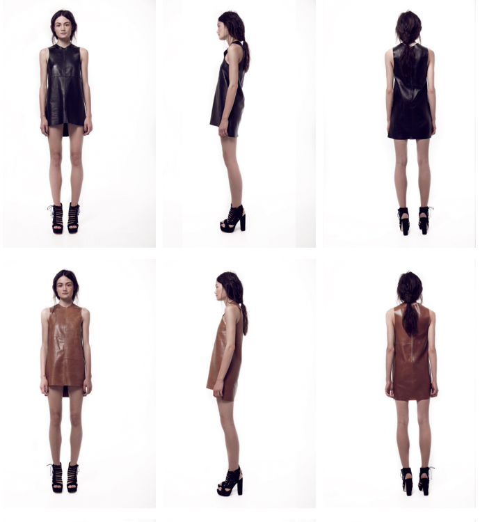 The white dress is my favorite along with the combination of black/white used with the skirt and pants. The leather pieces are cut shorter in the front and a little longer in the back. I like that contrast.