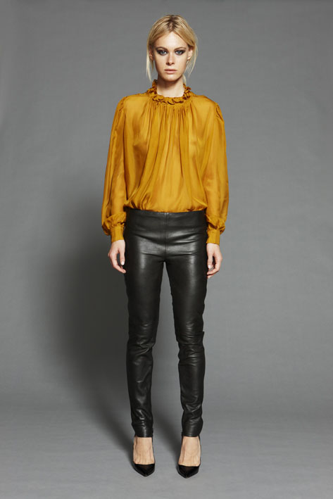 Capote Shirt with Bow Detailing - $295 and Leather Shorts - $395