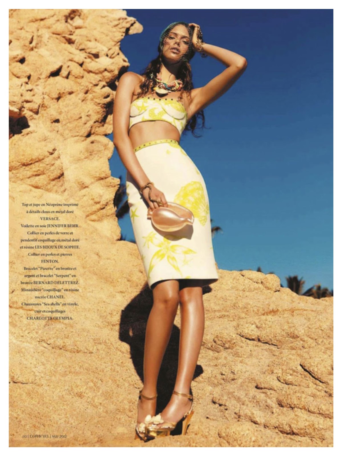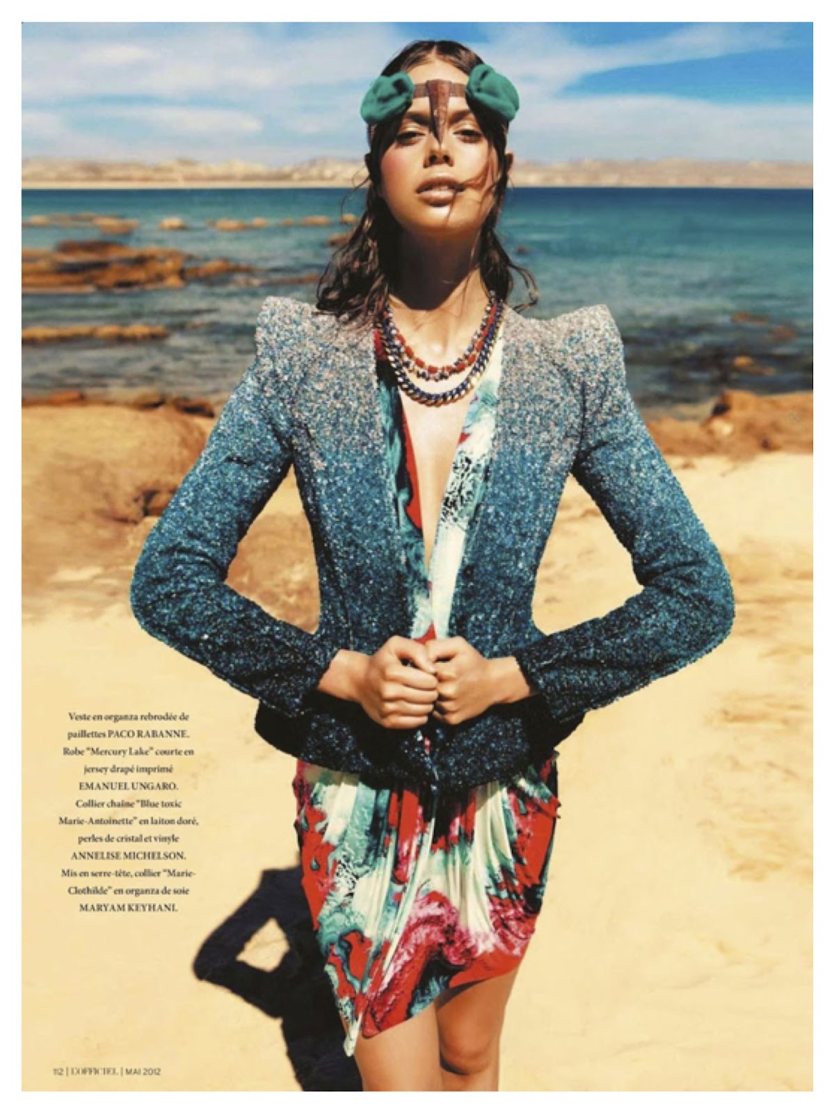 Photographer Alexander Neumann captures Beautiful images of Jessica Clarke as a Stunning Sea Siren/Queen "Sea Reines". The ocean backdrop along with the natural rocks and waves makes all the beautiful clothing stand out. Fashion Editor Vanessa Bellugeon pulls pieces from labels Ralph Lauren Collection, Alexander McQueen, GIORGIO ARMANI, ELIE SAAB, ZADIG & VOLTAIRE, BALMAIN, VERSACE, MICHAEL KORS, PACO RABANNE, EMANUEL UNGARO for Jessica to wear.