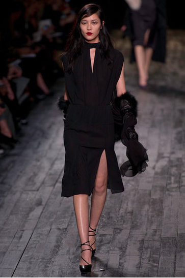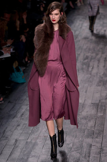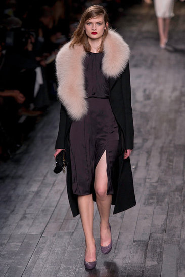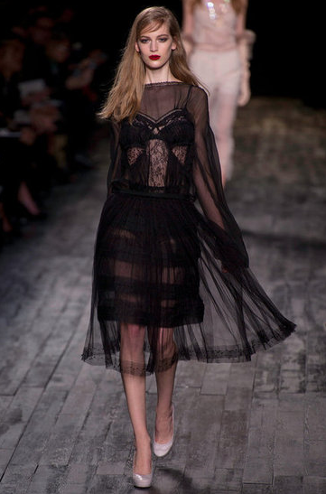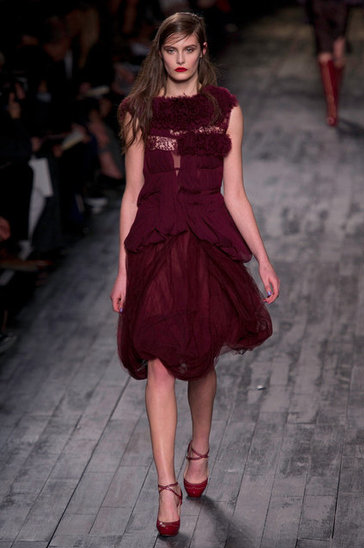 Peter Copping's 50's tinged Collection was inspired by a little girl playing dress up. The Collection consisted of party dresses, fur, lace, tulle, embroidery and ruffles in shades of black, garnet, blush and cream.
