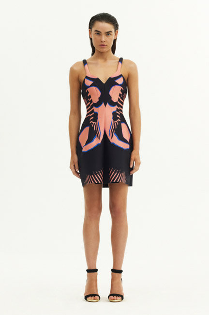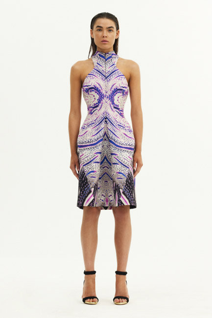 The Resort 2013 Collection modeled by Bambi Northwood-Blyth was inspired by the Great Barrier Reef. The coral pinks, ocean blues and ocean life were all apparent in the fabrics. The zebra-looking print was adapted from the patterned scales of a fish.