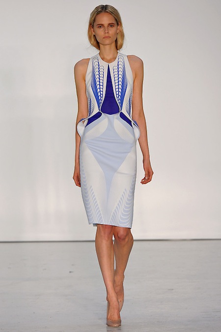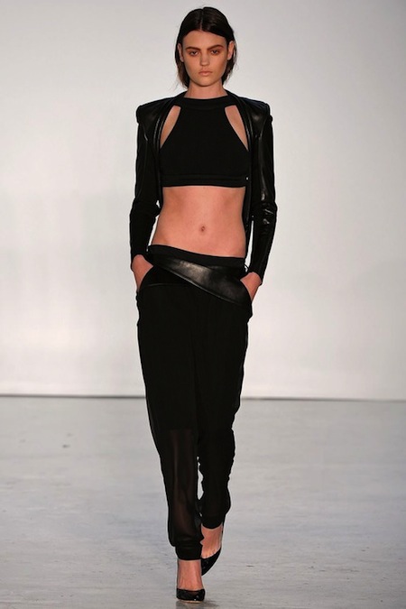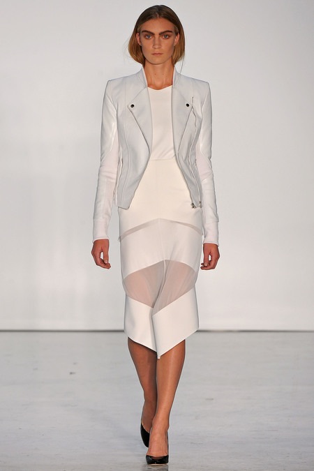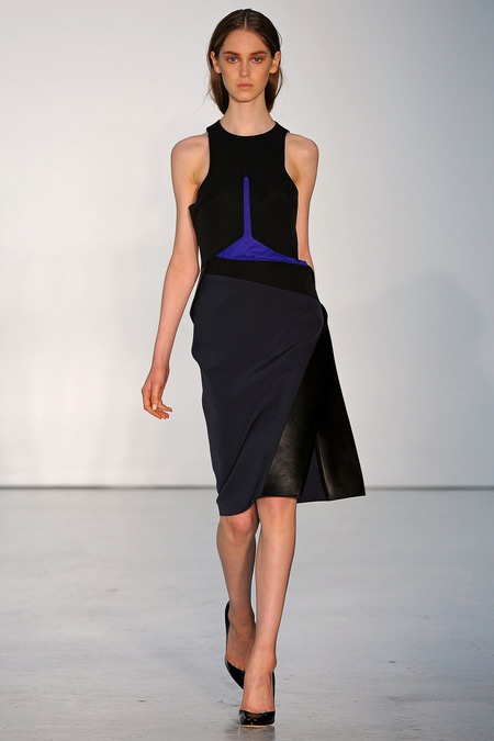 Dion Lee's talent is apparent again in his SS13 RTW Collection. The architectural tailoring, construction and luxurious fabric choices continues to be a factor in his success. He knows how to sculpt the fabrics to feature the human body and anatomy. His previous Collections were inspired by human anatomy and other functions of the body.