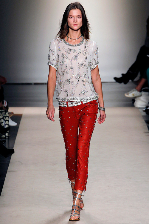 Isabel Marant's collection featured bold fabrics and lots of detail. It is described as "Elvis in Hawaii and a bit of Jane Birkin and Brigitte Bardot in St. Tropez around the late '60s and early '70s," Marant explained.