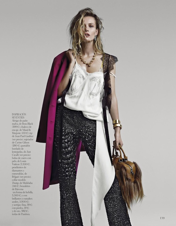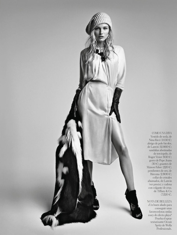 Patrick Demarchelier photographs Edita Vilkeviciute on the cover and in the pages of VOGUE ESPAÑA'S JANUARY 2013 Issue. Edita models designs by Lanvin, Michael Kors, Ralph Lauren, Derek Lam, Missoni, Versace, Roberto Cavalli, Valentino, Bottega Veneta, Nina Ricci, Roger Vivier, Dsquared2, Burberry Prorsum, Etro, Jean Paul Gaultier, Louis Vuitton, Oscar de la Renta. Edita wears a Chanel jacket and Isabel Marant pants on the cover.