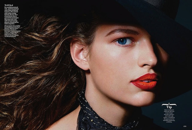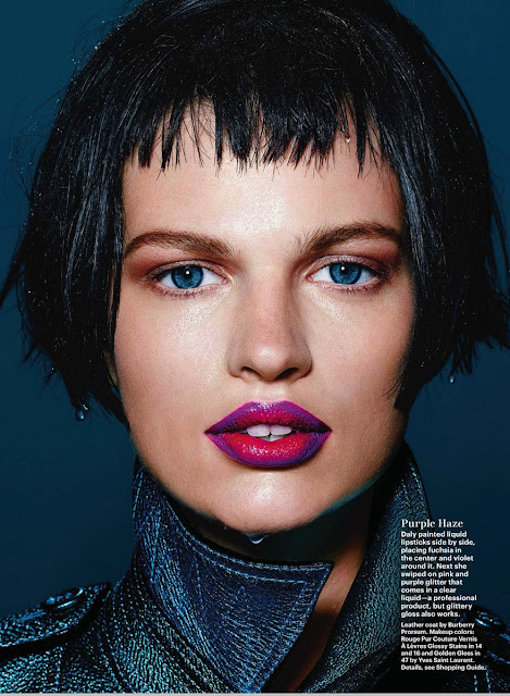 Richard Burbridge photographs Bette Franke in Allure's February 2013 Issue. Makeup Artist Francelle Daly creates vibrant lip colors with layering techniques. The makeup included Revlon, CoverGirl and Yves Saint Laurent. Bette Franke wears Burberry Prorsum, Saint Laurent and Calvin Klein Collection in thiditorial.