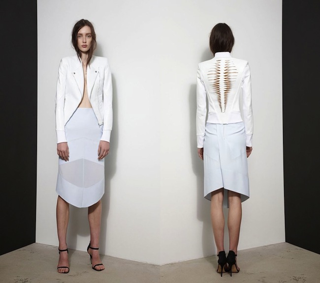 Dion Lee showcases his Amazing talent and skills in tailoring. The laser cutouts in leathers and fabrics showcase his signature architectural detailing. He knows how to construct, mold and sculpt the fabrics.
