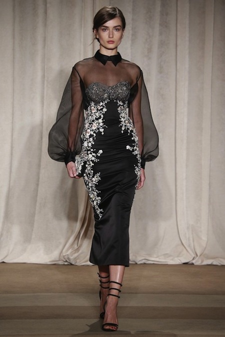 MARCHESA's Fall/Winter 2013 Collection is glamorous and beautiful. Design duo Keren Craig and Georgina Chapman were inspired by a vintage toreador trouser Chapman found. The trousers, their elaborate embroidery and tailoring created the Fall/Winter 2013 Collection.