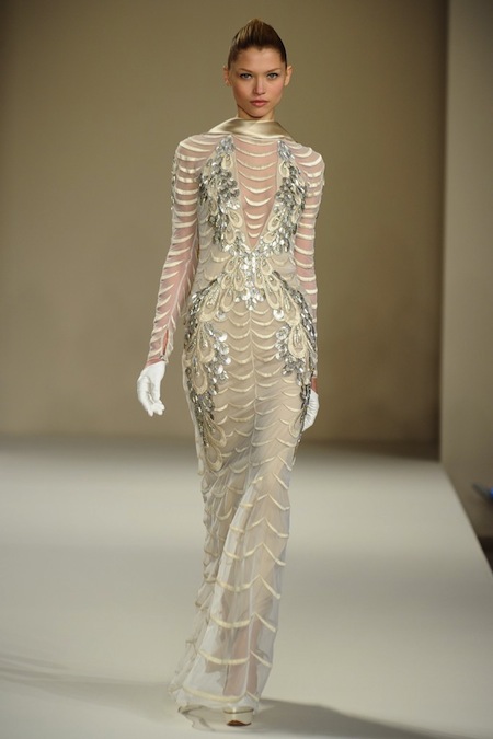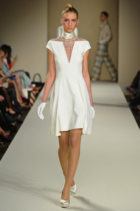 Alice Temperley revisted the early Sixties glamour of Tippi Hedren in "The Birds" for the Autumn/Winter 2013 Collection. The feminine designs combine meticulous embellishments, detail and tailoring.