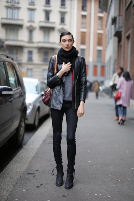 Jacquelyn Jablonski streetstyle is comfortable and chic. This 21 year old was scouted at a café she worked at. She received her first modeling contract at 15 from Ford Models. Her agencies include Select in London, Elite Milan in Milan, UNIQUE DENMARK in Copenhagen, Supreme in New York, Place Models in Hamburg and Elite in Paris.