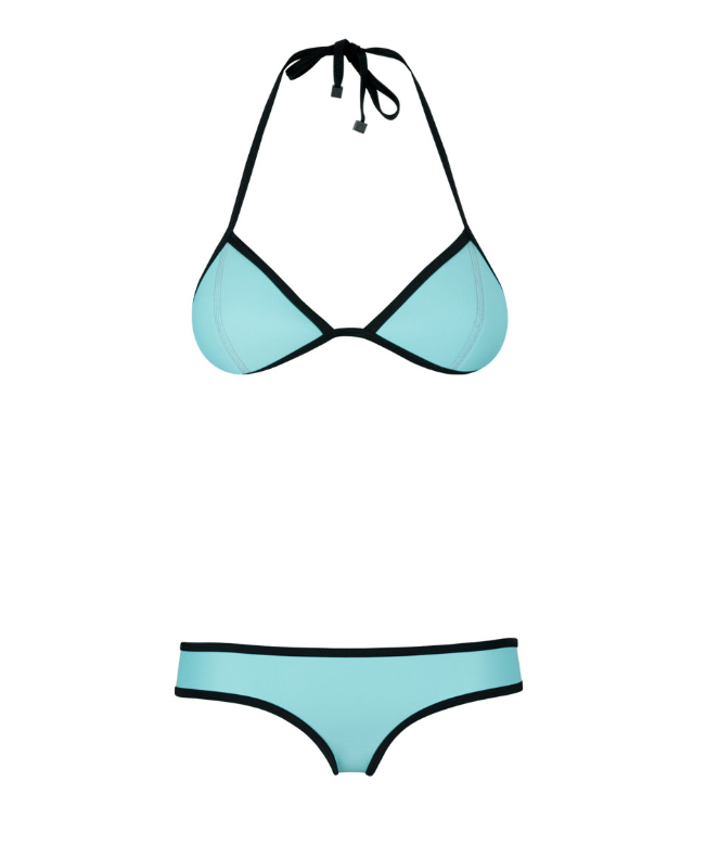 The Chloe Bikini is made with 100% Luxe Neoprene. The Neoprene 'Chloe' bikini is lined with TRIANGL'S signature black neoprene that will not go transparent when wet. The 'Chloe' is a modern spin on the triangle bikini.