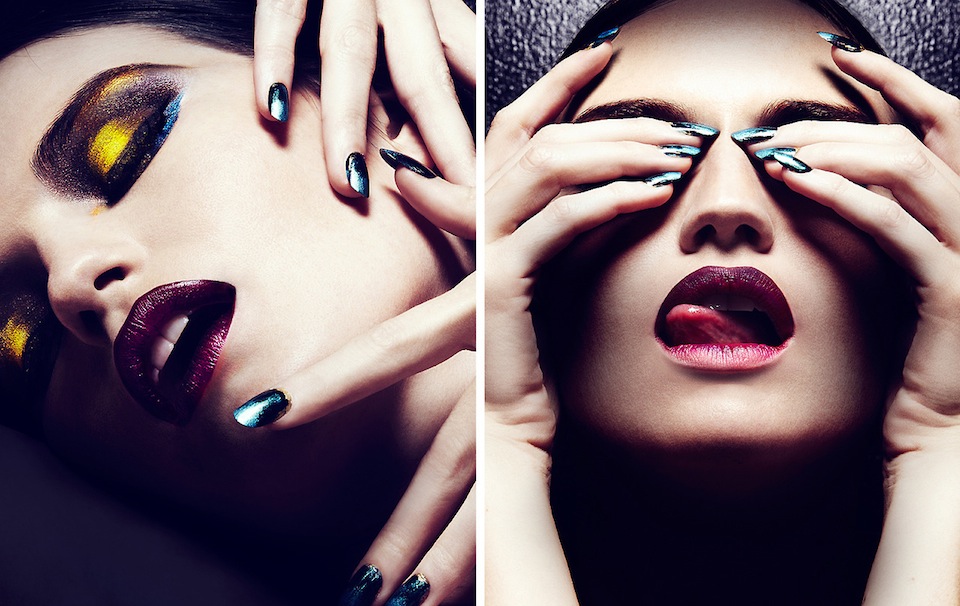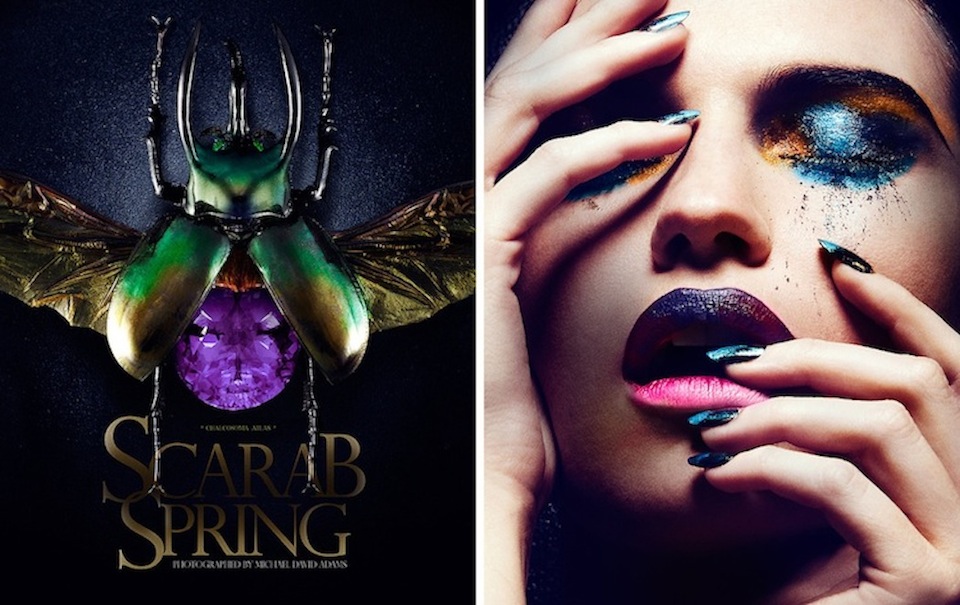 photographs Rachel Clark in bold, vibrant and colorful makeup looks by Viktoria Bowers in Scarab Spring.