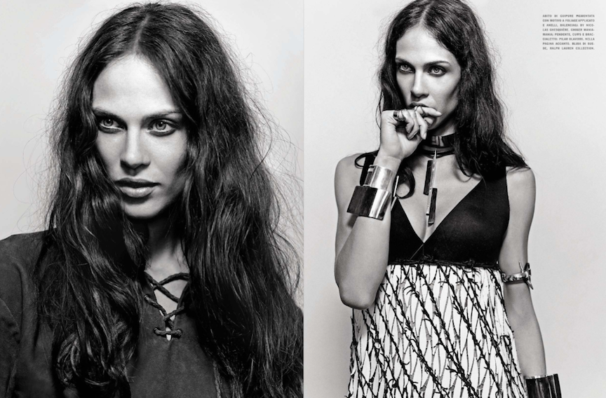 Emma Summerton photographs Aymeline Valade for VOGUE Italia, May 2013 in "FREE ATTITUDE". Aymeline models designs by GIVENCHY, MICHAEL KORS, SAINT LAURENT BY HEDI SLIMANE, VALENTINO, SCOTT WILSON, TOM FORD, ETRO, RICK OWENS, RALPH LAUREN COLLECTION and BALENCIAGA.