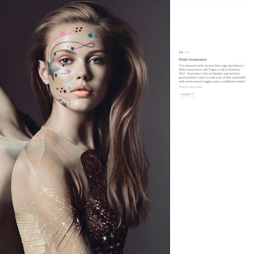 Models Miranda Kerr, Rosie Huntington-Whiteley, Freja Beha Erichsen, Frida Gustavsson, Erin Heatherton, Gisele Bundchen and Lily Cole share how they maintain their beautiful figures in VOGUE UK.