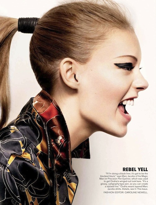 Ondria Hardin by Jason Kibbler for teenVOGUE, SEPTEMBER 2013 in "Beauty Marc". Caroline Newell styles Ondria in Marc Jacobs and Diane Kendal creates the beauty looks for Marc Jacobs Beauty.