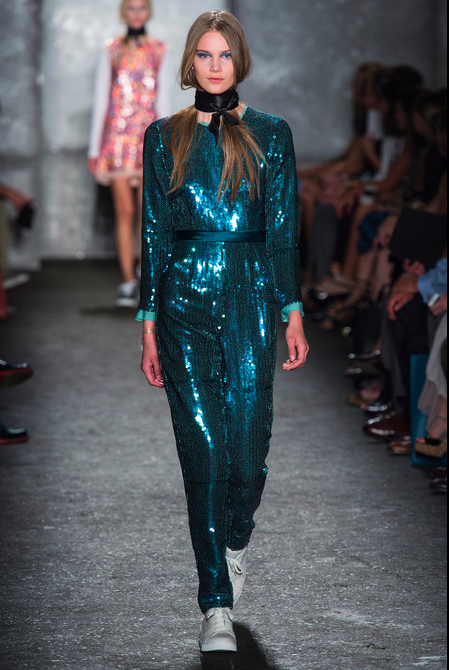 Marc by Marc Jacobs' S/S 2014 Collection was young and cool with an emphasis on shine. He used fabrics and materials such as satin, sequins, metallics and lurex throughout the collection.