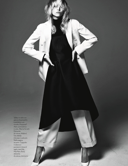 Anabela Belikova by Rafael Stahelin for AMICA MAGAZINE, OCTOBER 2013 in "BIANCO E NERO". Ye Young Kim styles Anabela in Dolcevita, Acne, Bottega Veneta, Christian Louboutin, Dsquared², Alberta Ferretti, Wolford, MaxMara, Intimissimi, CĂ©line, Louis Vuitton, Tome, Valentino and Donna Karan.