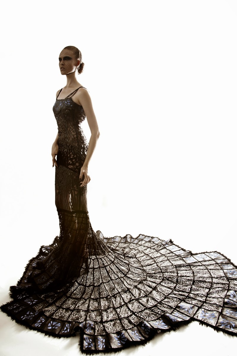 Polish designer Malgorzata Dudek extraordinary attention to detail and form are noticeable in her pieces. She uses cruelty-free and alternative materials for her designs. The "ARACHNE" Collection was inspired by a 60's NASA experiment with spiders on drugs.
