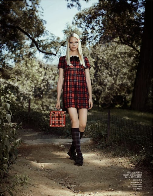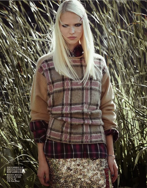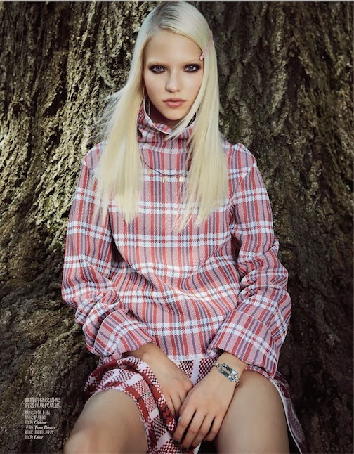 Sasha Luss by Max Vadukul for VOGUE CHINA, OCTOBER 2013 in "Checkmate". Nicoletta Santoro styles Sasha in Prada, Tom Binns, Agnona, Church's, Sacai Luck, Yelete, Rochas, No. 21, Black Fleece, Yelete, Rochas, Jil Sander, Saint Laurent, Marni, Céline and Dior.