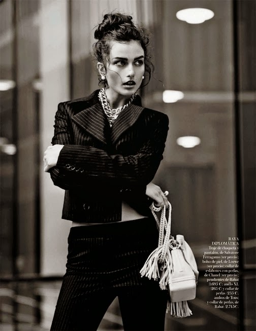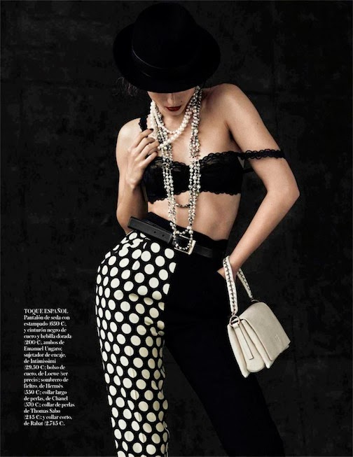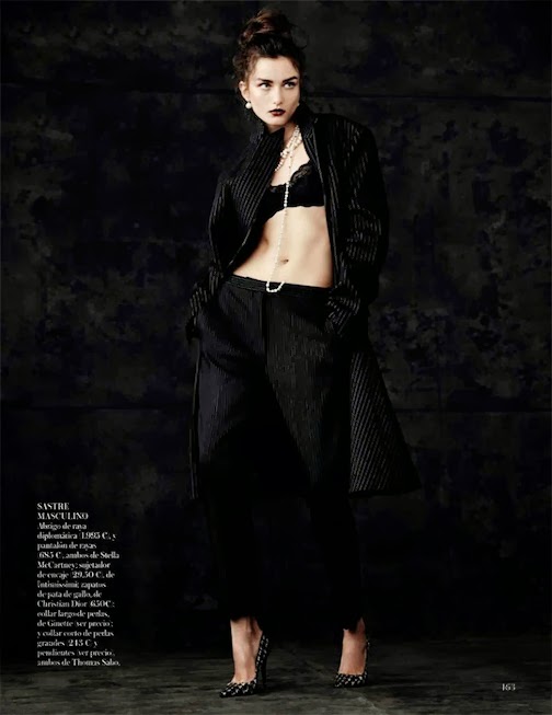 Andreea Diaconu by Mariano Vivanco for VOGUE SPAIN, OCTOBER 2013 in "Ladies & GENTLEMEN". Belén Antolín styles Andreea in ARMANI, CHRISTIAN DIOR, THOMAS SABO, RABAT, JUAN VIDAL, AMERICAN APPAREL, GIUSEPPE ZANOTTI, LANVIN, STELLA McCARTNEY, HUGO BOSS, ETAM, GIVENCHY, H&M, EUGENIA KIM, TOUS, BOTTEGA VENETA, GUESS, TOM FORD, 3.1 PHILLIP LIM, DSQUARED2, RALPH LAUREN, CALVIN KLEIN, DRIES VAN NOTEN, LACOSTE, HAIDER ACKERMANN, CHANEL, SALVATORE FERRAGAMO, LOEWE, BARBARA BUI, MICHAEL KORS, TOM FORD, CUSTO BARCELONA, BLUMARINE, PRADA, MAX MARA, AGENT PROVOCATEUR, EMANUEL UNGARO, INTIMISSIMI, LOEWE, HERMÈS, MASSCOB and MELANIE GEORGACOPOULOS.