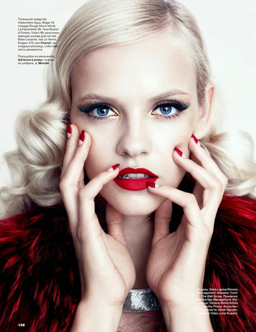 Ginta Lapina by Norman Jean Roy for Allure RUSSIA, DECEMBER 2013. Anya Ziourova styles Ginta in J. Mendel, Matthew Williamson, Lanvin, Adrienne Landau, Agent Provocateur and Fenton Fallon.