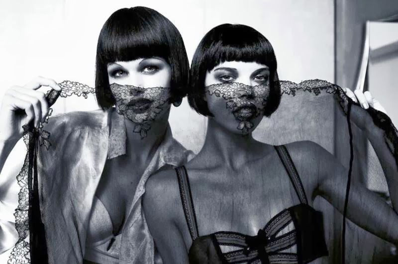 Emma Stern Nielsen and Eva Doll by Ellen von Unwerth for MADAME FIGARO, December 2013 in "Sexy Boudoir/Glam Cabaret".