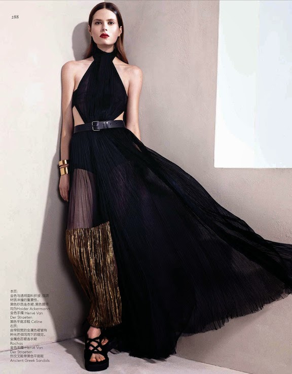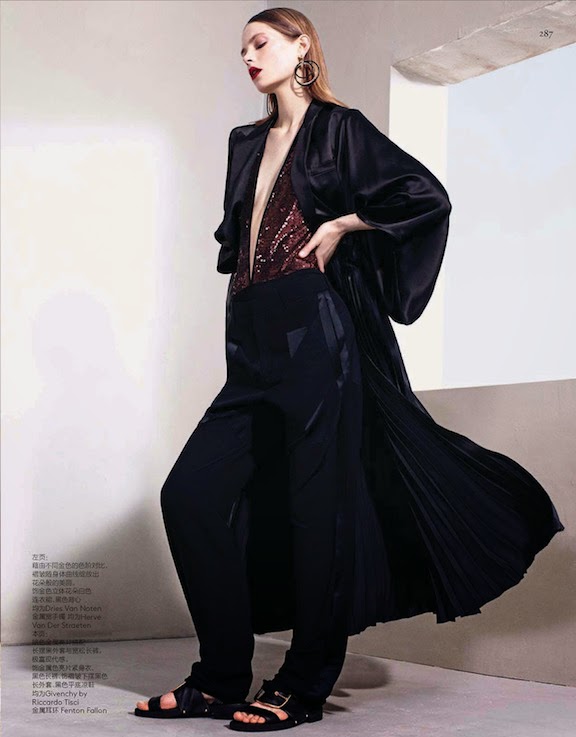 Caroline Brasch Nielsen by Sharif Hamza for VOGUE CHINA, JANUARY 2014. Tiina Laakkonen styles Caroline in Lanvin, Vintage Maison Martin Margiela, LD Tuttle, Nina Ricci, McQ, Fenton Fallon, Céline, Dries Van Noten, Hervé Van Der Straeten, Givenchy by Riccardo Tisci, Haider Ackermann, Rochas and Ancient Greek Sandals.