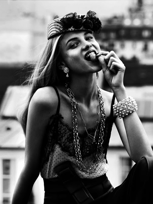 Anna Selezneva by Lachlan Bailey for VOGUE PARIS, JANUARY 2014 in "Chambre 19". Géraldine Saglio styles Anna in SANDRO, MONETTE, ANNE FONTAINE, MICHDULCE, SYLVIA TOLEDANO, CHANEL JOAILLERIE, ESTHER VINA 1950, MAJE, REPETTO, ANNE-SOPHIE COULOT, GERBE, BUCCELLATI, TRÉSORS BY DEAR CHARLOTTE, BEN AMUN, DINH VAN, ERNEST and BULGARI.