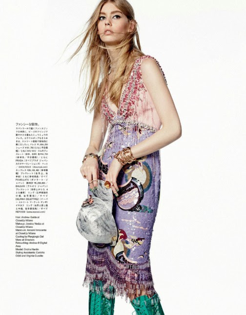 Ondria Hardin by Giampaolo Sgura for VOGUE JAPAN, FEBRUARY 2014 in "TAKE TIME TO SPARKLE". Anna Dello Russo styles Ondria in MAISON MARTIN MARGIELA, PRADA, POMELLATO, DELFINA DELETTREZ, POMELLATO, BVLGARI, RODARTE, MOSCHINO, REPOSSI, SAINT LAURENT, EMILIO PUCCI, SHOUROUK, KOTUR, FENDI, ALAN JOURNO, DOLCE & GABBANA, GUCCI and MIU MIU.