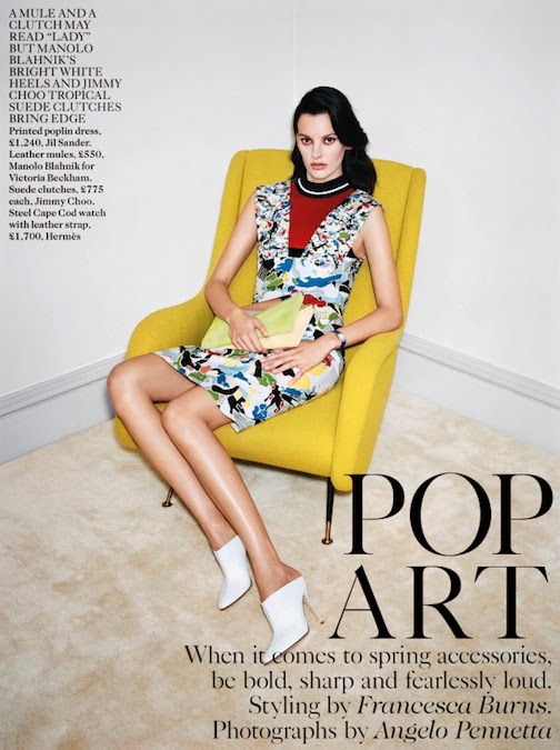Amanda Murphy by Angelo Pennetta for VOGUE UK, FEBRUARY 2014 in "POP ART". Francesca Burns styles Amanda in Jil Sander, Manolo Blahnik for Victoria Beckham, Jimmy Choo, Hermès, Céline, Dior Joaillerie, Asprey, Max Mara, Coach, Kenzo, Burberry Prorsum, Prada, Tom Ford, Larsson & Jennings, Ralph Lauren Collection, Balenciaga, Anya Hindmarch, Toywatch, Sportmax, Mulberry, Opening Ceremony, Tod's, Stella McCartney, Hugo, Casadei, Longchamp, Versace, Cesare Paciotti, Christopher Kane, Givenchy by Riccardo Tisci, Joseph, Alberta Ferretti and Chanel Fine Jewellery.