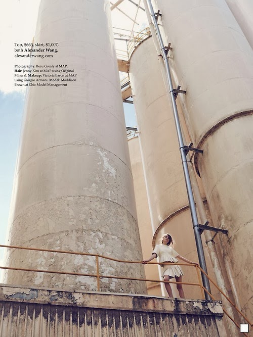 Maddison Brown by Beau Grealy for ELLE AUSTRALIA, FEBRUARY 2014 in "Basics Training". Nicole Bonython-Hines styles Maddison in CĂ©line, Burberry Prorsum, Alexander Wang, Veronika Maine, Tag Heuer, Unif. M, Tiffany & Co., Manning Cartell, Jac⁺Jack, Ellery and Sarah & Sebastian.