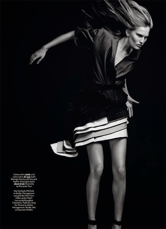 Alla Kostromichova by David Roemer for Marie Claire UK, February 2014. Arabella Greenhill styles Alla in Bottega Veneta, Givenchy, Simone Rocha, David Koma, Gianvito Rossi, Alexander Wang, Erdem, Dolce & Gabbana, Dries Van Noten, Michael Kors and Saint Laurent by Hedi Slimane.