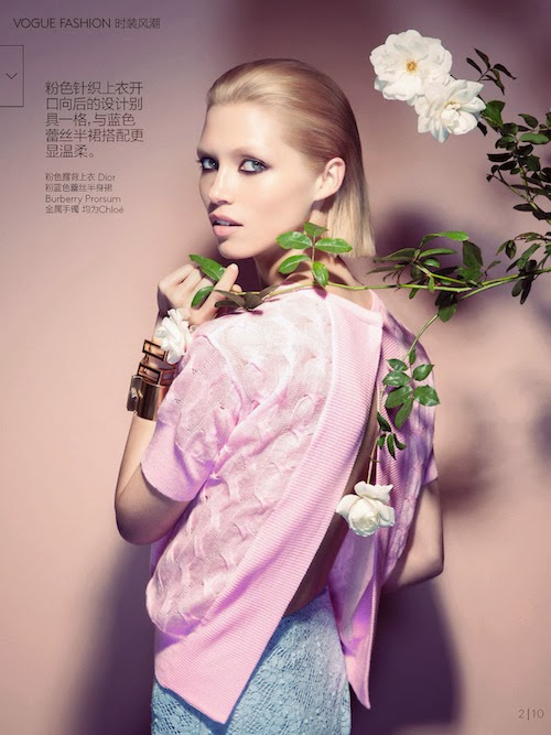 Hana Jirickova by Camilla Åkrans for VOGUE CHINA, MARCH 2014 in "peach BLUSH". Franck Benhamou styles Hana in Blumarine, Chloé, Nina Ricci, Balenciaga, Christian Louboutin, Balmain, Chanel, Burberry Prorsum and Dolce & Gabbana.