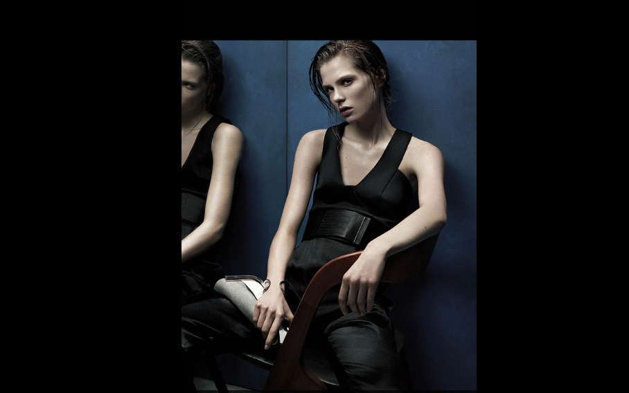 Caroline Brasch by Gregory Harris for WSJ Magazine, March 2014 in "Wait Until Dark: After-Hours Clothes". Elin Svahn styles Caroline in Ralph Lauren Collection, Lynn Ban, Salvatore Ferragamo, Alexander Wang, Balenciaga, Lanvin, Proenza Schouler, Bottega Veneta, Georg Jensen, Gucci and Céline.