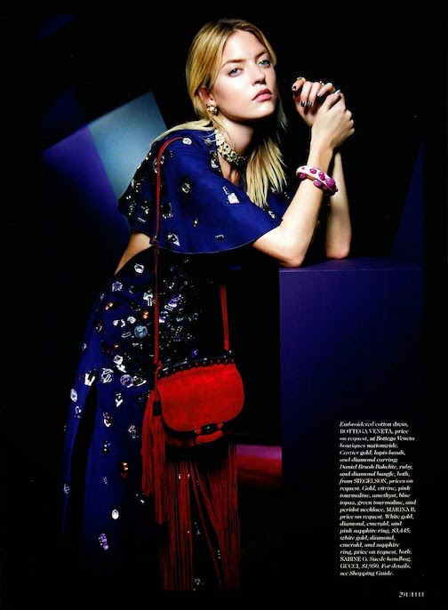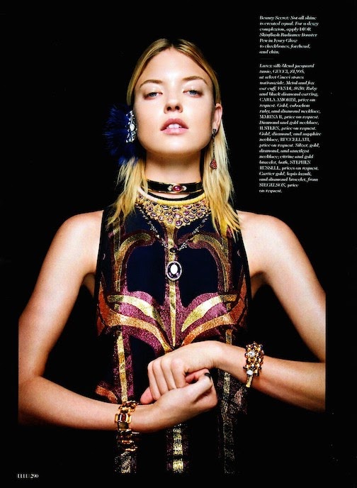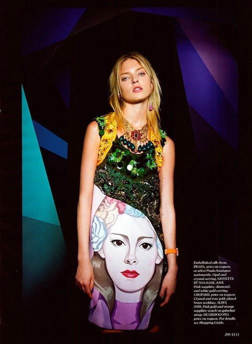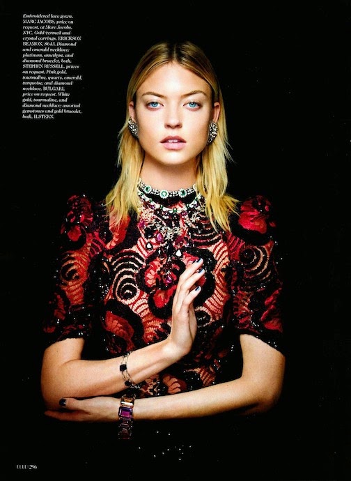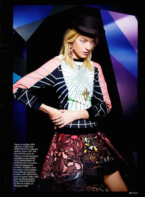 Martha Hunt by Yelena Yemchuk for ELLE, APRIL 2014 in "CENTER OF ATTENTION". Lori Goldstein styles Martha in JEREMY SCOTT BY LINDA FARROW GALLERY, PRADA, POMELLATO, MARC JACOBS, ERICKSON BEAMON, BULGARI, VALENTINO, VERSACE, PEBBLE LONDON, NOOR FARES, RUNA JEWELRY, DAVID YURMAN, PETER PILOTTO, H. STERN, DIANE VON FURSTENBURG, GUCCI, FENDI, BUCCELLATI, BOTTEGA VENETA, MARNI, ANYA HINDMARCH, CHRISTIAN LOUTOUTIN, MASON MIGUEL, HELEN YARMAK, DELFINA DELETTREZ, MIU MIU, DIOR, CHANEL and more.