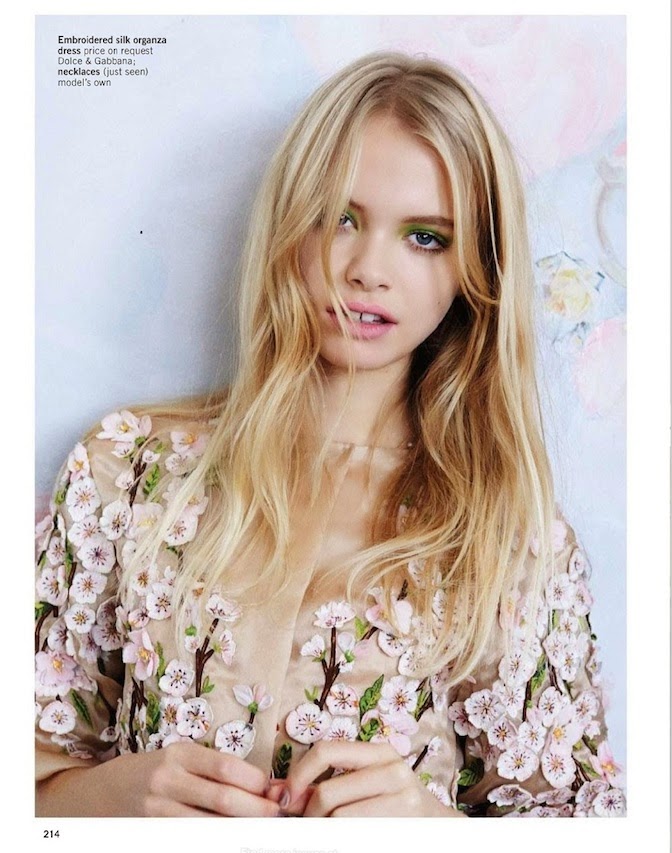 Charlie Newman by Pamela Hanson for GLAMOUR UK, APRIL 2014 in "Ah, spring... we've been expecting you. Emer Dewar styles Charlie in Marc by Marc Jacobs, Giuseppe Zanotti, Thakoon, Chanel, Topshop Unique, Kate Spade, John Galliano, Dolce & Gabbana, Belinda Robertson, DKNY, Jimmy Choo, Emporio Armani, Stephen Jones Millinery and Dior.
