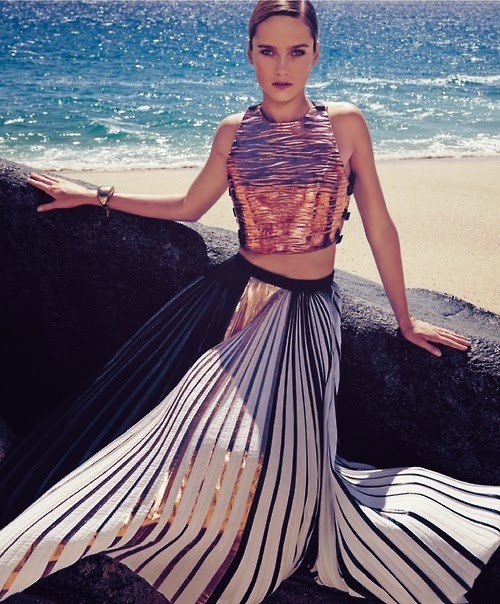 Karmen Pedaru by Paola Kudacki for Harper's BAZAAR, MARCH 2014 in "PRECIOUS METALS". Tony Irvine styles Karmen in Max Mara, Lanvin, Altuzarra, Gucci, Emporio Armani and Proenza Schouler.