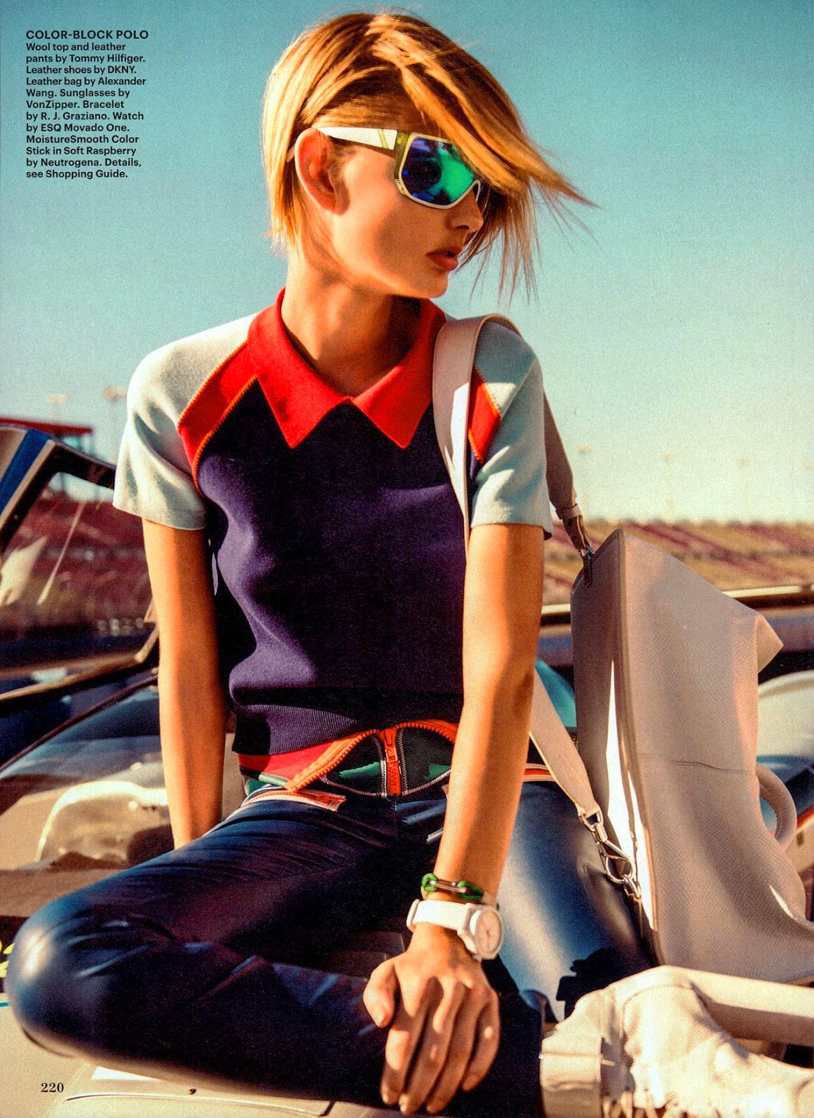 Patricia Van Der Vliet by Sebastian Kim for Allure, April 2014 in "Shifting Gears". Siobhan Bonnouvrier styled Patricia in Fendi, Reed Krakoff, Tory Burch, Citizen, Vera Wang, Manolo Blahnik for Edun, Tommy Hilfiger, DKNY, Alexander Wang, VonZipper, R. J. Graziano, ESQ Movado One, Giorgio Armani, Céline and Emilio Pucci.