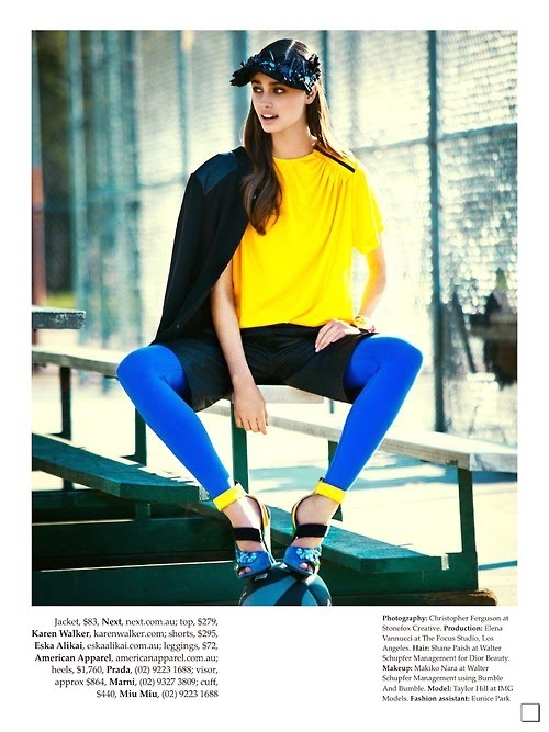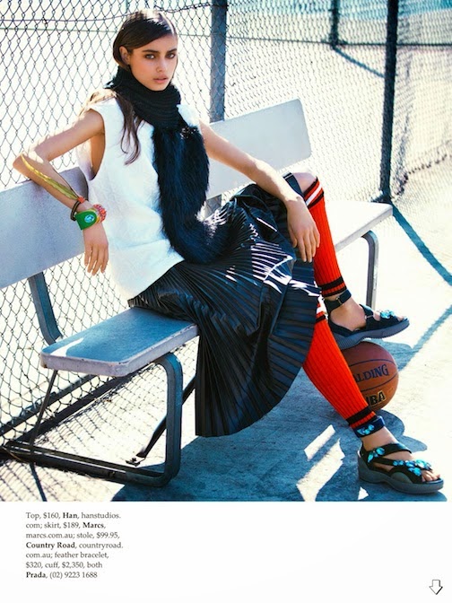 Taylor Marie Hill by Christopher Ferguson for ELLE AUSTRALIA, APRIL 2014 in "TEAM PLAYER". Nicole Bonython-Hines styled Taylor in Chanel, Cotton On, Prada, Karen Walker, Eska Alikai, American Apparel, Marni, Miu Miu, Winston Wolfe, Michael Lo Sordo, Bassike, Céline, Misha Collection, Tommy Hilfiger, Adidas, Boss Orange, G-Star, Stylestalker, MaxMara, Uniqlo, Amber Seats, Next, Han, Marcs and Country Road.
