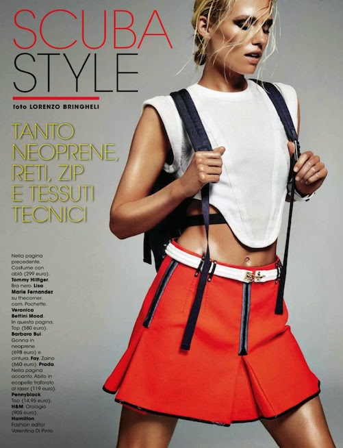 Tosca Dekker by Lorenzo Bringheli for GLAMOUR ITALIA, JUNE 2014 in "SCUBA STYLE". Valentina di Pinto styled Tosca in Lisa Marie Fernandez, Veronica Bettini Mood, Barbara Bui, Fay, Tommy Hilfiger, Prada, Pennyblack, H&M, Hamilton, Emporio Armani, Emilio Pucci, Milly, Diego M, DKNY, Cressi, Nicholas Kirkwood, Siste's, Marni, Parah New Generation, Mandarina Duck, Yamamay, La Fille Des Fleurs, OpsObjects, Twin-Set Simona Barbieri and Versace.