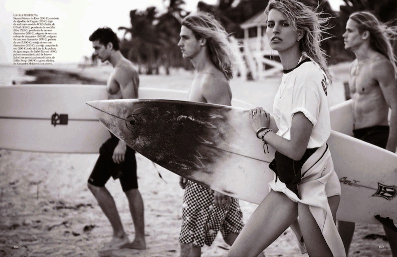 Karolina Kurkova by Giampaolo Sgura for VOGUE ESPAÑA, JUNE 2014 in "Surfin' USA". Claudia Englmann styled Karolina in Balmain, Diesel Black Gold, Jimmy Choo, Line & Jo, Isabel Marant, Eddie Borgo, Alexander McQueen, Eres, Stella McCartney, Zadig & Voltaire, issever Bahri, Lisa Marie Fernández, Chanel, Ungaro, Chloé, Tommy Hilfiger Collection and Anthony Vaccarello.