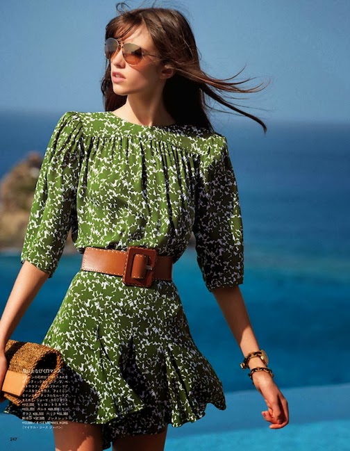 Grace Hartzel by Patrick Demarchelier for VOGUE JAPAN, JUNE 2014 in "THE LUXURY OF ESCAPE". Katie Mossman styled Grace in MICHAEL KORS.