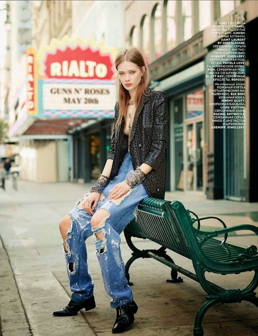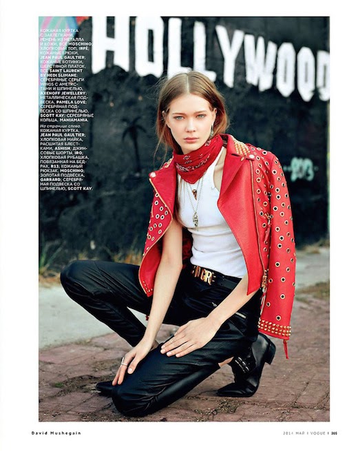 Tanya Katysheva by David Mushegain for VOGUE RUSSIA, MAY 2014. Olga Dunina styled Tanya in RODARTE, GARRARD, VERSACE, SLIM BARRETT, SAINT LAURENT BY HEDI SLIMANE, RACHEL ENTWISTLE, H&M, REPOSSI, AXENOFF JEWELLERY, PAMELA LOVE, SCOTT KAY, BLK DNM, JEREMY SCOTT, LOUIS VUITTON, BELSTAFF, TIGER IN THE RAIN, FILLES A PAPA, EMILIO PUCCI, MOSCHINO, JEAN PAUL GAULTIER, MANIA MANIA, IRO, ASHISH, R13 and CHANEL.