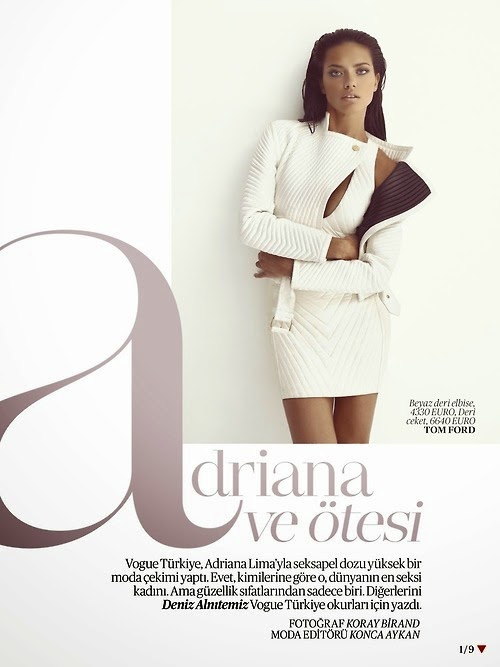 Adriana Lima by Koray Birand for VOGUE TURKEY, MAY 2014 in "adriana ve ötesi". Konca Aykan styled Adriana in TOM FORD, BALATT, BALMAIN, EUGENIA KIM, ALEXANDER MCQUEEN, GIUSEPPE ZANOTTI, SAINT LAURENT BY HEDI SLIMANE, FAUSTO PUGLISI, BARBARA BUI-BEYMEN, ZEYNEP ÖKMEN and VERSACE.