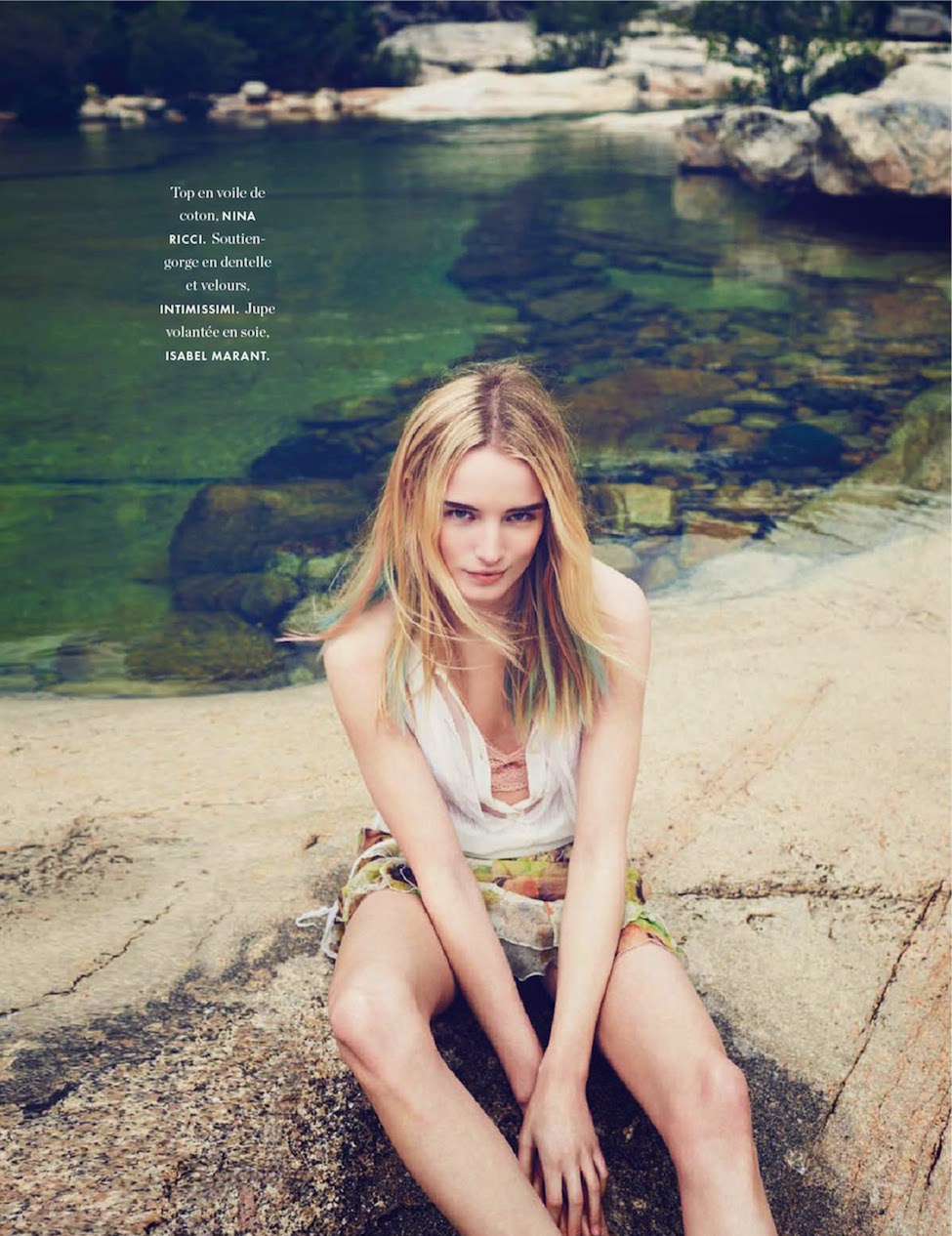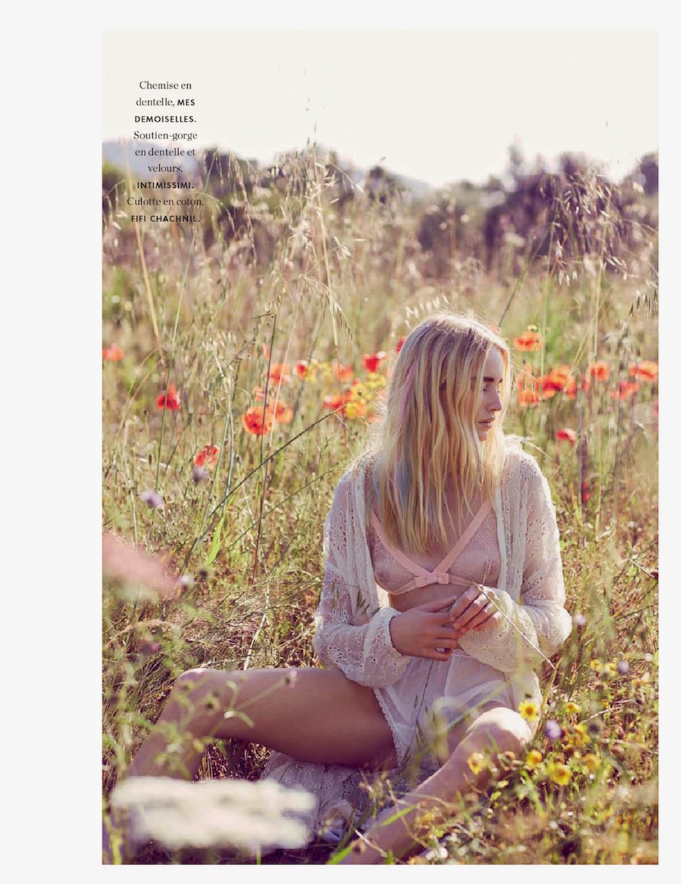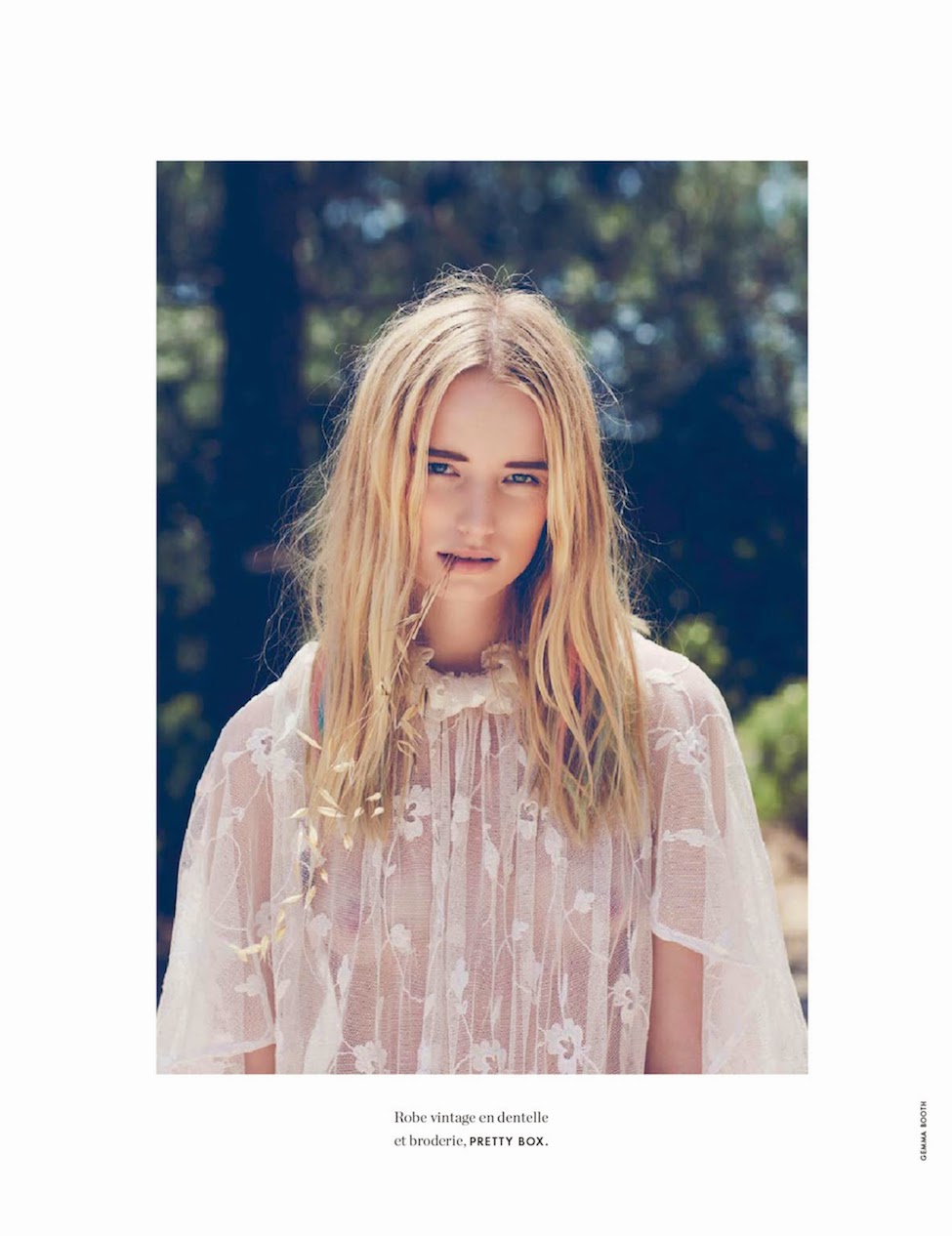 Maud Welzen by Gemma Booth for ELLE FRANCE, JUNE 2014. Chloe Dugast styled Maud in Henriette H, Sud Express, Burberry Prorsum, Dolce & Gabbana Eyewear, Isabel Marant, Fifi Chachnil, Nina Ricci, Intimissimi, American Vintage, Haider Ackermann, Fine Collection, Blue Chez Yaya Store, Mes Demoiselles and Pretty Box.