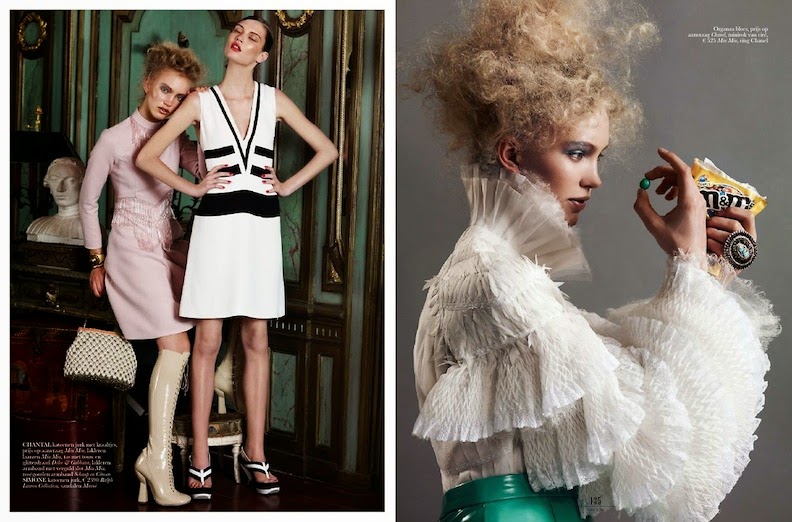 Lieke Van Houten and Kim Mclane by Wendelien Daan for ELLE NETHERLANDS, JUNE 2014 in "ZUS EN ZO". Thomas Vermeer styled Lieke and Kim in Christian Dior, Tiffany & Co., Mulberry, Viktor & Rolf, Marni, Miu Miu, Dolce & Gabbana, Ralph Lauren Collection, Chanel, Burberry Prorsum, Caroline Biss, Céline, Stella McCartney, Pomellato, Marc Jacobs and Diesel Black Gold.