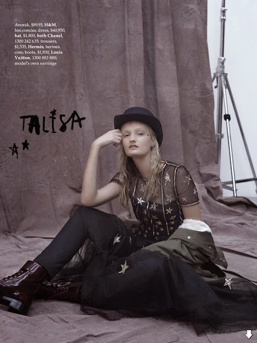 Claudia Wilkinson, Elle Brittain, Sophia Rambaldini, Astrid Holler, Fernanda Ly, Remy Lloyd, Perri Roach, Georgia Graham, Elodie Russell, Talisa Quirk, Charlee Fraser, Jasmine Hikaka and Lauren Feenstra by Daniella Rech for ELLE AUSTRALIA, AUGUST 2014 in "CASTING CALL". Sara Smith styles the models in Scotch & Soda, Stüssy, Happy Socks, ManiaMania, Pushmataaha, Pink LouLou, Ryder, MLM, Bassike, Hugo Boss, Poms, Burberry Prorsum, Thomas Sabo, Kookaï, Sarah & Sebastian, D-ID Jeans, Dr. Marens, Céline, Puma, Natalie Marie Jewellery, Calvin Klein Collection, Marni, Joie, H&M, Spring Court, Bulgari, Sportmax, A/X Armani Exchange, Calvin Klein Platinum, RM Williams, After The Apple, By Charlotte, Prada, Le Coq Sportif, Bassike, John MacArthur for Purl Harbour, Georgia Alice, Cartier, Adidas, Zimmermann, The 2 Bandits, Kailis, Dion Lee II, Hermès, Louis Vuitton, Chanel, Giorgio Armani and Gucci.