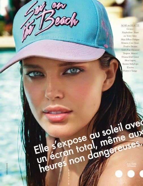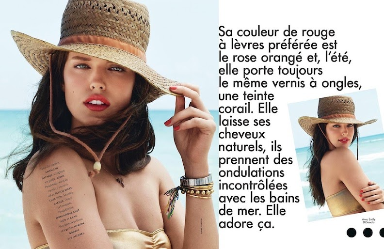 Emily DiDonato by Bjarne Jonasson for ELLE FRANCE, JULY 2014 in "SPLASH". Anne-Marie Brouillet styled Emily in Emporio Armani, Marion Godart, Balenciaga, H&M, Prada, Filles À Papa, American Vintage, Thakoon Addition, Cartier, Jean-Paul Lespagnard, Givenchy by Riccardo Tisci, Wunderkind, Stella McCartney, Tommy Hilfiger, American Apparel, Obey, Roseanna, Laurence Dolige, Armani Jeans, Mykita by Bernhard Willhelm, Marc Jacobs, Shiatzy Chen, New Balance, Gucci, Paul & Joe, Emmanuelle Khanh, Ermanno Scervino, Chloe, Balmain and Valentino.