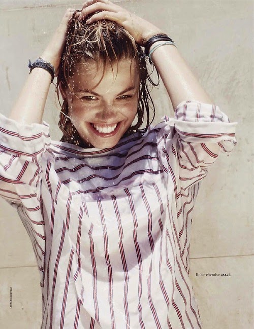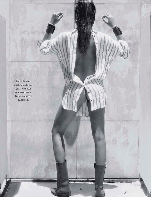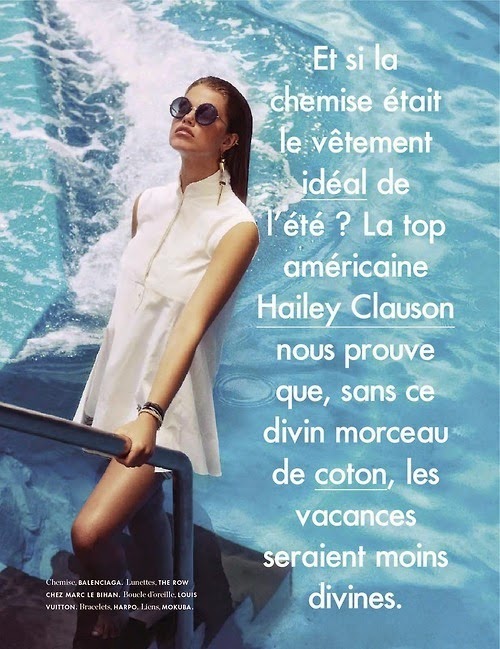 Hailey Clauson by Laura Sciacovelli for ELLE FRANCE, JULY 2014 in "LA CHEMISE DU SOLEIL". Elissa Castelbou styled Hailey in Boss, Givenchy by Riccardo Tisci, Gucci, Harpo, Maje, Balenciaga, The Row, Louis Vuitton, Esprit, The Kooples, Chanel Horlogerie, IKKS, Anne Fontaine, Alexander Wang, Maison Michel, Chloe Vanessa Bruno and Charvet.