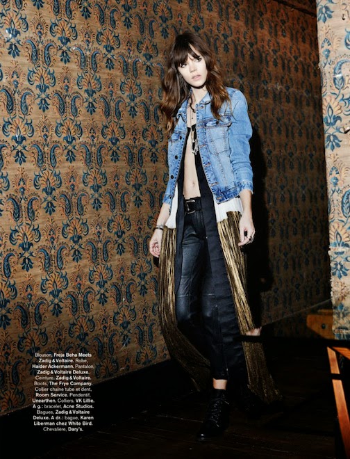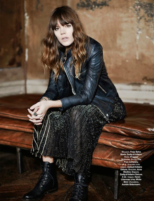 Freja Beha Erichsen by Fred Meylan for GLAMOUR FRANCE, AUGUST 2014 in "Rock & FOLK". Marine Braunschvig styled Freja in BLK DNM, Zadig & Voltaire, Zadig & Voltaire Deluxe, Aurélie Bidermann, The Frye Company, Unearthen, Acne Studios, Repossi, Dries Van Noten, Karen Liberman, Louis Vuitton, Wolford, Haider Ackermann, Marc Jacobs and Rochas.