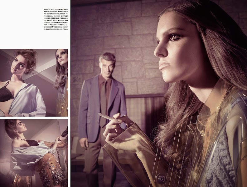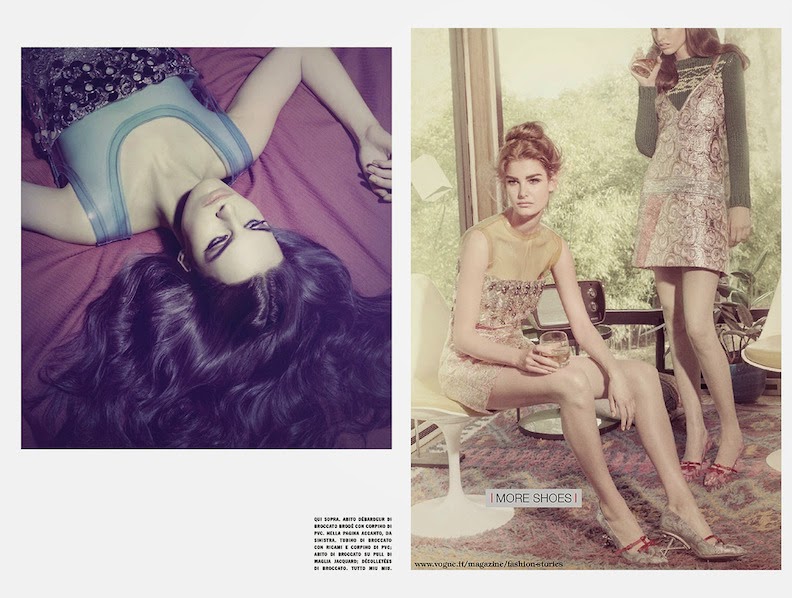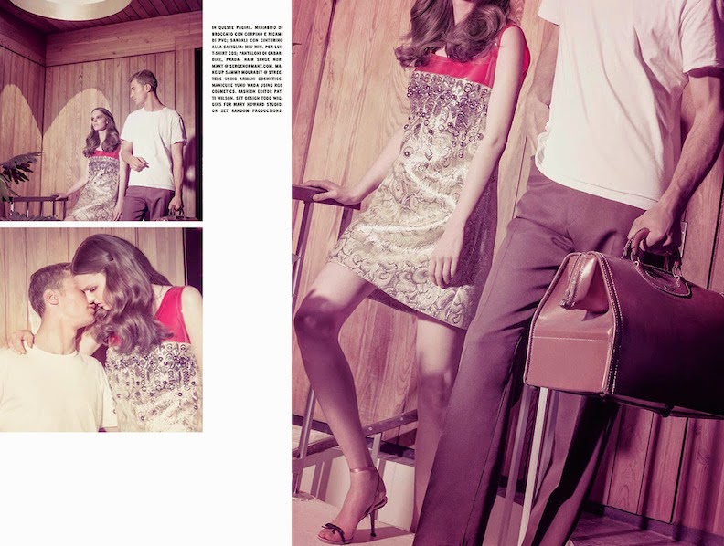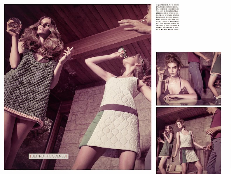 Ophelie Guillermand, Clement Chabernaud and Lisa Verberght by Tom Munro for VOGUE ITALIA, JULY 2014 in "SO GLAM". Patti Wilson styled Ophelie and Lisa in Prada and Miu Miu.